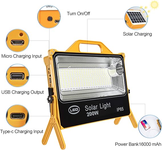 Batería de gran capacidad y banco de energía] Batería recargable de gran capacidad integrada de 16000 mAh, en modo de ahorro de energía, la luz de trabajo puede funcionar continuamente durante más de 48 horas, puede proporcionar energía de emergencia para teléfonos móviles u otros dispositivos móviles en emergencia.